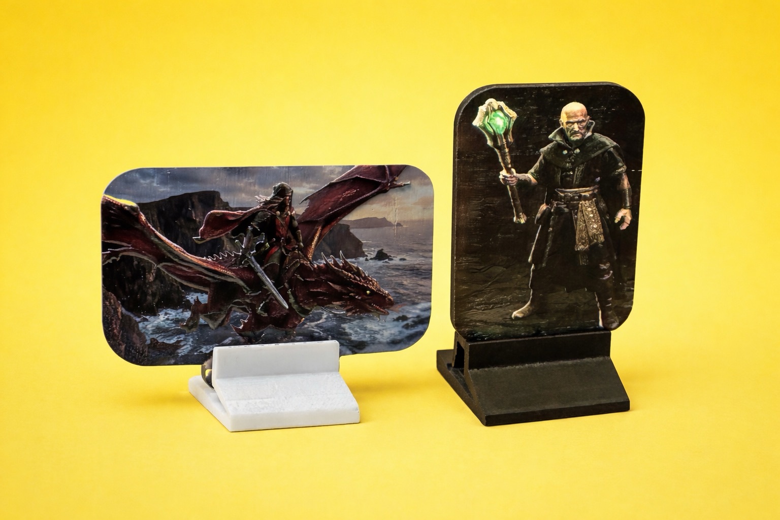 Each piece features vibrant UV printing and tactile embossing, adding “3D” depth to your character’s gear. To ensure they’re ready for the table, every hero includes a sturdy plastic stand compatible with standard battle maps.