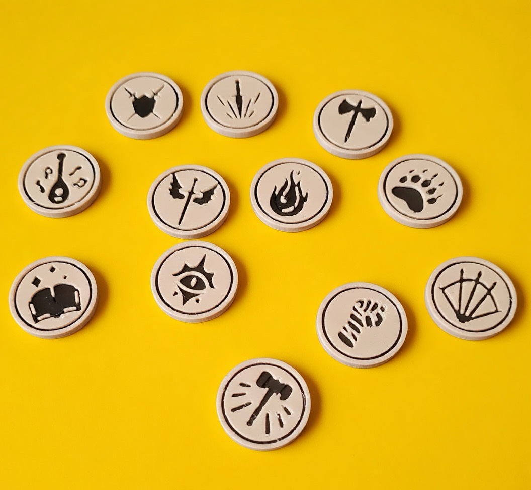 Textured tokens to track abilities, buffs, and status effects during gameplay.